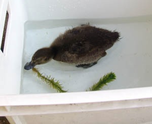 Toen bleek dat het diertje ondanks de afwezigheid van een eendenmoeder toch lange tijd waterafstotend bleek te zijn werd een oud afwasteiltje tot eendenvijvertje omgedoopt.